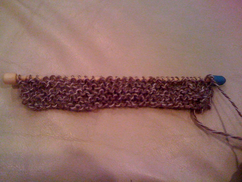 I am attempting to teach myself to knit with the help of some ladies in a yarn shop. I don't know why I decided to start trying this now but...hey. I am trying to secretly make a scarf for my husband as my first project - the wool itself is an alpaca. I ended up having to rip out several rows because me and eye-hand coordination are still working on coming to a meeting of the minds but I've gotten farther than it shows in this pic (like I told the ladies at the yarn shop: I can throw one heck of a left hook but knitting? Confounds me.)